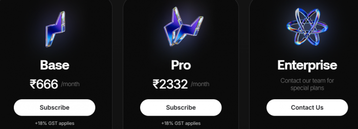 | Pro | ₹2916 | 4000 | More credits, all Base features |
