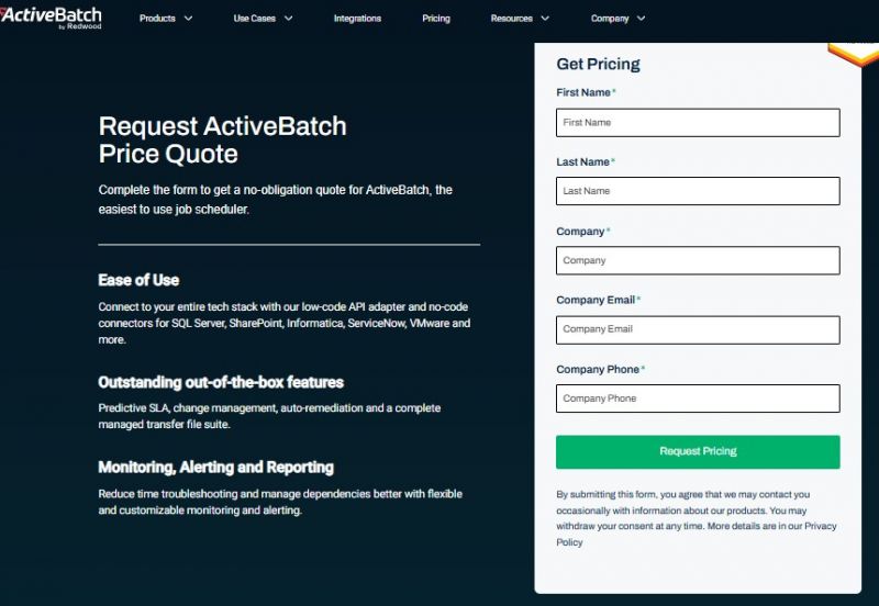 ActiveBatch provides a central automation hub for scheduling and monitoring business-critical systems including CRM, ERP, Big Data, BI, ETL tools, and work order management. It connects to any server, application, or service for limitless endpoints and orchestrates cross-functional workflows with load balancing, dependency checking, reporting, and notifications. The platform offers a low-code drag-and-drop GUI with hundreds of pre-built job step templates requiring no scripting, event-driven triggers, dynamic resource allocation, and high availability failover. It supports integrations like ServiceNow, SQL Server, and SharePoint for end-to-end processes across on-premises, hybrid, and cloud environments.