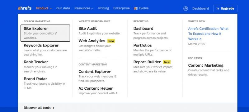 Ahrefs is a comprehensive SEO and marketing intelligence platform that assists businesses in enhancing their online visibility through data-driven insights. Established in 2010, it has become a preferred tool for marketers, SEO professionals, and content creators worldwide. Ahrefs is renowned for its robust data infrastructure, maintaining one of the most active web crawlers globally, which powers its suite of tools.