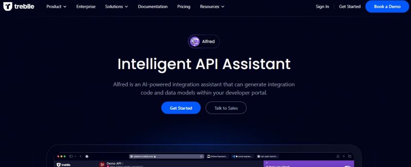 Treblle automates workflows in developer portals. It generates integrations, tests, and SDKs across programming languages. The assistant navigates API landscapes, discovers APIs, and supports integration without pre-training. It works inside Treblle or embeds into any developer portal. Alfred understands API documentation to provide code snippets, data models, test scripts, and architecture suggestions. It reduces learning curves for API initiatives by assisting with endpoint understanding and optimization.