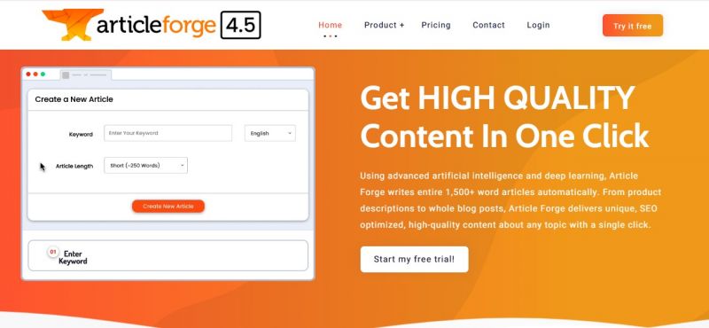 Article Forge is an AI-powered writing tool aimed at bloggers, SEO agencies, affiliate marketers, and content teams that need to scale long-form content quickly. You input a keyword (and optionally length, language, or other settings) and Article Forge automatically researches the topic, generates a full article (often 1,500+ words), and can even include images, videos, links, and publish directly to WordPress. It stands out by positioning itself as “fully automatic” (no human writer required) and built on “over ten years of AI research” per its marketing