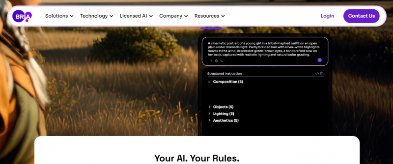 Bria provides a suite of visual generative AI models for text-to-image, image-to-image, and video synthesis. Customizable models support fine-tuning for e-commerce product visualization, brand marketing content creation, and interactive customer experiences. Every visual parameter1, lighting, camera, objects, composition, background, color1remains explicit, disentangled, and human-machine-readable. This enables full control without ambiguous prompts or hidden interpretations. The platform integrates via APIs and SDKs into workflows, with cloud-hosted or on-premises deployment. Editing tools handle background removal, generative fill, object removal, style transfer, and video scene detection while preserving original integrity and quality.