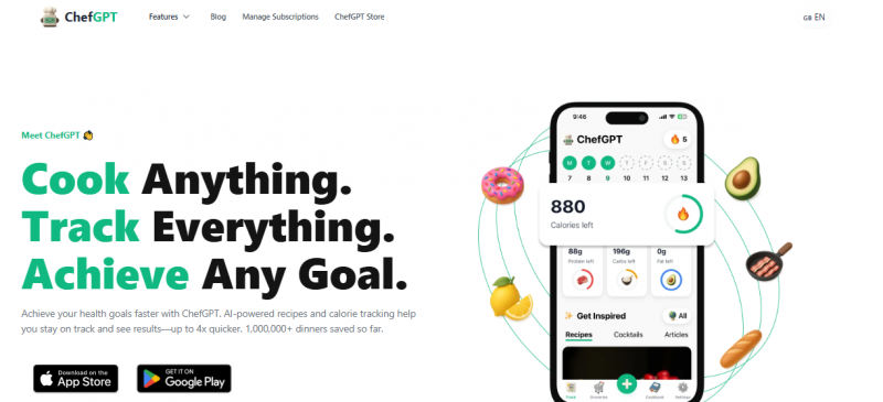 ChefGPT generates recipes, meal plans, and tracks nutrition from photos of meals. Users snap a photo to detect ingredients, estimate calories, and log entries automatically. It creates personalized recipes from listed ingredients or searches, builds weekly meal plans with shopping lists based on preferences and goals, and tracks pantry stock to suggest uses before waste occurs. Modes include PantryChef for ingredient-based recipes, MasterChef for variations adjusted by servings, time, skill level, and dietary needs like vegan or keto, MacrosChef for macro-targeted meals, and MealPlanChef for tailored plans. Integration allows saving to cookbooks, adding to shopping lists, or ordering via AmazonFresh or Instacart.