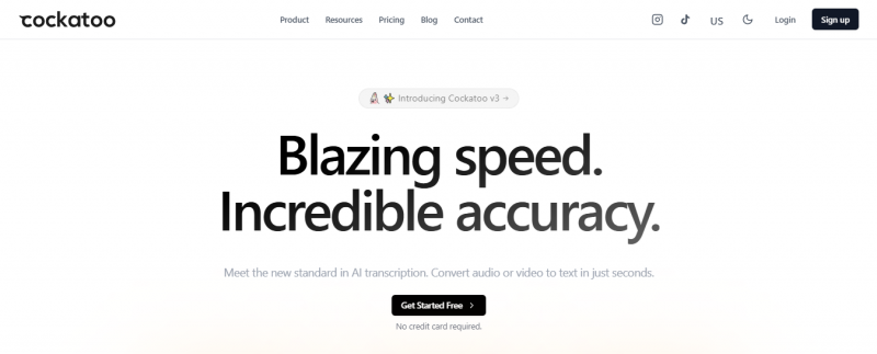 Cockatoo converts audio or video files to text in seconds. It processes recordings through upload, transcription, and export steps. Transcripts reach up to 99.9% accuracy for spoken English with a 95% accuracy quality guarantee. The tool handles unlimited files for personal use under yearly membership, transcribes at up to 50X human speed, and supports various accents. Outputs include punctuation, word-by-word timestamps, and SRT format for subtitles. No transcoding is needed for most file formats.
