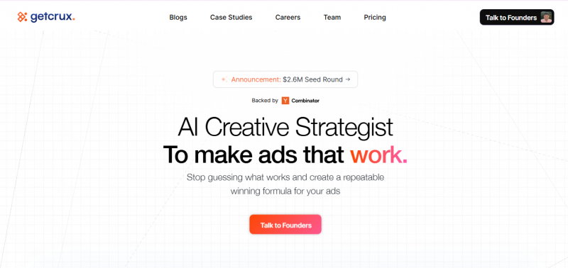 Crux enables creation of a repeatable process for ad creatives through analysis and generation tools. It focuses on stopping guesswork in ad testing by using audience sentiment and performance data to fuel ideas and launch assets. Core components include AI Creative Analyzer for insights from existing ads, AI Audience Analyzer for sentiment-based ideas, and AI Creative Generator for producing scroll-stopping ads in minutes. The platform supports major ad platforms, first-party sources like databases and BI tools, third-party sources such as MMPs and attribution platforms, and custom integrations. It handles aggressive creative testing, as shown by teams generating thousands of assets monthly.
