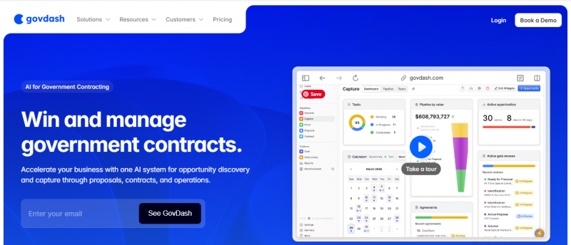 GovDash provides an AI platform that streamlines capture, proposals, contract management, and related workflows for government contracting. It replaces multiple tools with unified processes, producing compliant proposals 60% faster using past performance data. The platform organizes federal documents, tracks opportunities from SAM.gov and PIEE, and delivers real-time insights across capture, proposal, and contract stages. AI agent Dash offers context-aware support, web searching, and agentic editing within workflows. Knowledge management reduces content duplication, while capability breakdowns link company data to contract requirements.