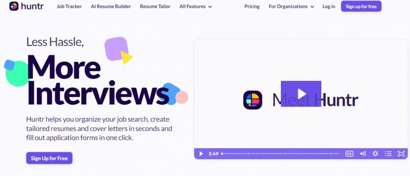 Huntr is a job search management platform designed to help job seekers organize and track their applications in a structured way. According to the official website, the tool provides a visual board that allows users to manage job opportunities across different stages, from discovery to offer. Users can store job details, company information, resumes, and notes in one centralized workspace.