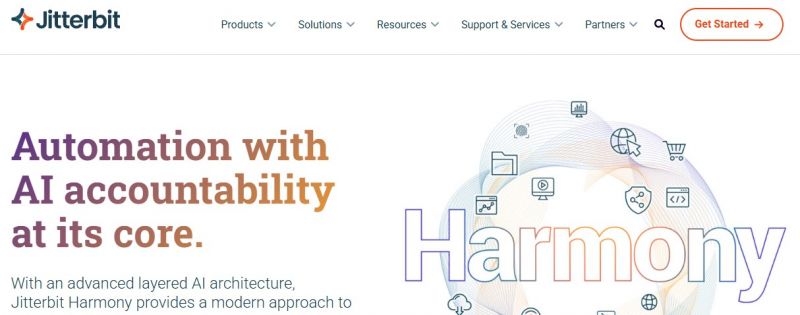 Jitterbit Harmony provides a unified AI-infused low-code platform for integration, orchestration, automation, and app development. It connects applications, data, systems, and processes to automate workflows and execute complex tasks through intelligent agents. AI agents can be designed with natural language or low-code in the same studio used for integrations.