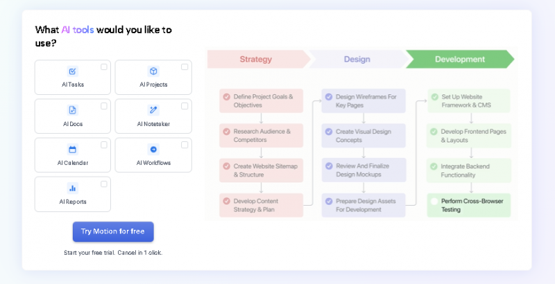 Motion is an AI-powered productivity platform designed to automate task scheduling and calendar management. Instead of manually planning daily work, users enter tasks, deadlines, and priorities, and Motion automatically schedules them into their calendar. As meetings are added or tasks take longer than expected, the system dynamically reschedules work to keep plans realistic and up to date. Motion combines task management, calendar planning, and project tracking into a single interface, helping individuals and teams focus on execution rather than planning.