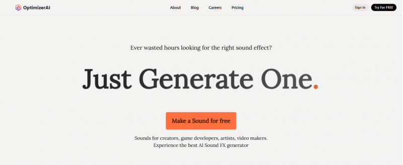 OptimizerAI lets you describe the audio you want and get generated sound instantly. Its web interface works for individual users and professionals alike. The model supports text-to-sound with high-fidelity audio and also provides API access for enterprise or developer usage. Free and paid options exist to match lightweight experimentation or heavy generation workflows.