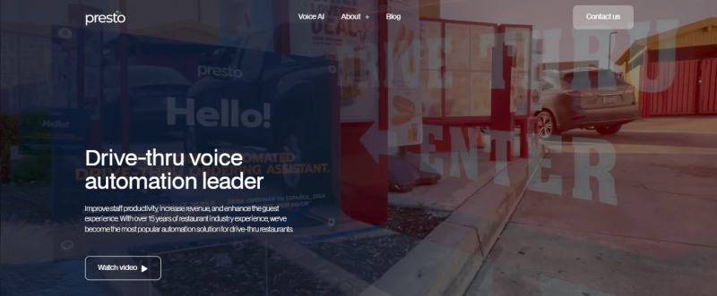 Presto automates drive-thru order-taking using voice assistant technology and machine learning algorithms. It handles customer orders with over 95% without human intervention, operates 24/7 at peak efficiency, and provides real-time data through 16 operational metrics in its Presto Vision ecosystem. The system supports upselling by suggesting add-ons based on ordering patterns, reduces wait times, and increases order accuracy. Deployed across thousands of restaurants, it integrates ease of installation with scalability for drive-thru operations.