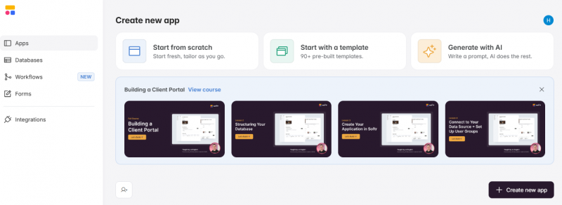 Softr Studio enables building custom AI-powered portals, internal tools, and apps from existing data sources using drag-and-drop blocks. It connects to spreadsheets, databases like Airtable, Google Sheets, and HubSpot, or Softrs built-in databases for dynamic content that stays synced. Users customize layouts, logic, permissions, and branding without coding. AI features include querying app data, agents for data enrichment, and a co-builder for workflows. Automations handle tasks across tools like Zapier. Sites and apps include SEO, custom domains, forms, and security compliant with SOC2 and GDPR.