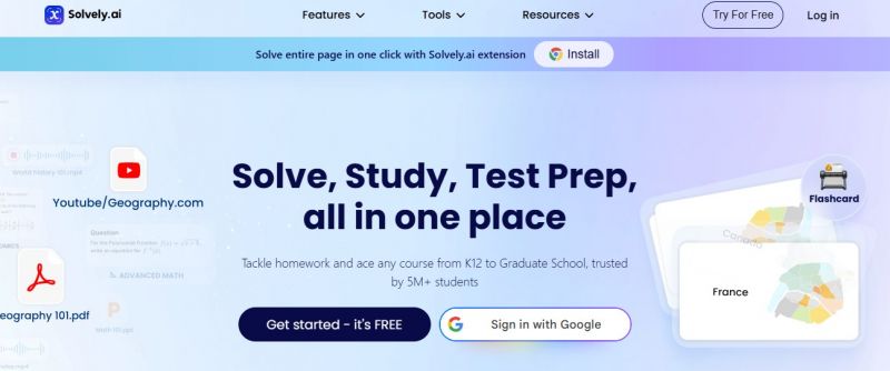 Solvely enables users to solve math problems by uploading photos, text, or screenshots for instant step-by-step explanations. It covers math from basic arithmetic to advanced calculus, including equations, graphs, and word problems. The tool provides detailed guidance on the solution process across subjects. Additional functions include AI tutoring for interactive questions, live notes that transcribe and summarize lectures or videos, a quiz generator, writing assistant, focus mode, and calculator. A browser extension supports summarizing webpages and videos. Mobile apps for iOS and Android allow solving problems on the go.