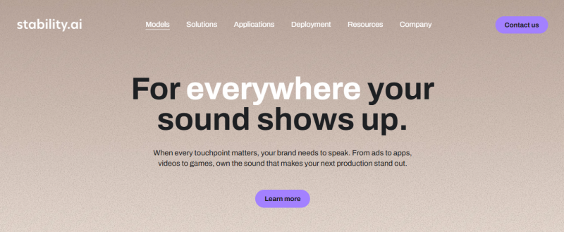 Stable Audio generates music tracks up to three minutes long, sound effects, and transformations of original audio using natural language prompts. Stable Audio 2.5 produces studio-quality sounds with complex musical structure for production across ads, apps, videos, and games. Models support SFX and musical compositions with leading inference speeds. Deployment options include enterprise licensing for self-hosting, API access, and on-premises weights for Stable Audio Open and Stable Audio Open Small. Custom fine-tuning works with the audio research team on sound libraries.