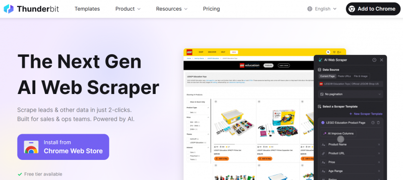 Thunderbit is a Chrome Extension that uses AI to read website content and output data as tables. It enables extraction from websites, PDFs, and images in two clicks. The tool structures data using natural language instructions and exports to Excel, Google Sheets, Airtable, or Notion. AI handles subpage visits to enrich tables, auto-clicks pagination, and provides templates for sites like Amazon, Zillow, and Instagram. Free features include email extractor, phone number extractor, image downloader, and AI autofill. Scheduled scraping monitors content or pricing changes.
