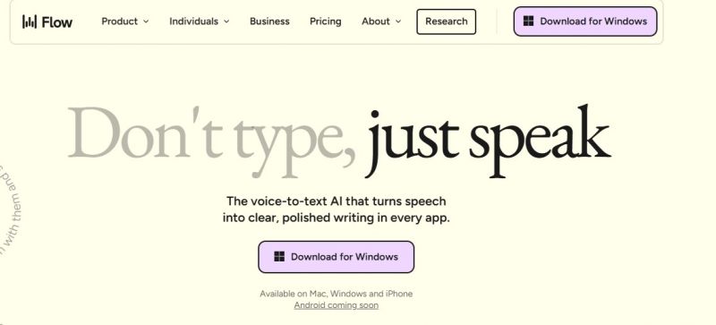 Wispr Flow turns speech into clear, polished writing in every app. It transcribes at speeds up to 220 words per minute, four times faster than typing. Users speak naturally, and the tool handles transcription, auto-edits to remove filler words, and formats text instantly. A personal dictionary learns unique words. Snippet library provides voice shortcuts for repeated phrases. Available on Mac, Windows, and iPhone, with Android coming soon. Works in any text field, including Notion, Google Docs, Microsoft Word, Slack, Gmail, and code editors.